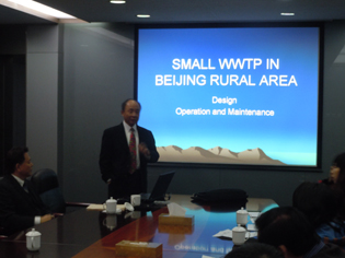 4日在水科所和市水保总站的陪同下,两位专家林幸雄和方玉山博士赴密云和怀柔考察了典型小型污水处理站的运行与管理,其工艺涉及膜生物反应器(MBR)、旋转生物接触氧化系统(RBC)、小型一体化污水处理系统(CWT)、板式过滤活性污泥法和生物通道等。5日专家对考察情况做思考与总结并形成专题讲座,与来自密云、怀柔、门头沟、昌平、延庆、房山、平谷、亦庄开发区等多个区县(开发区)水保站技术人员进行了技术交流。专家强调了前期调查与设计的重要性,建议污水处理运行人员应接受技术培训和资格认证,并加强运行过程中的监测与数据积累。最后专家介绍和讲解了美国在小型污水处理领域的经验和方法,并推荐了适宜北京特点的工艺。交流会上专家与区县技术人员积极互动,彼此交流、分享先进技术与经验。