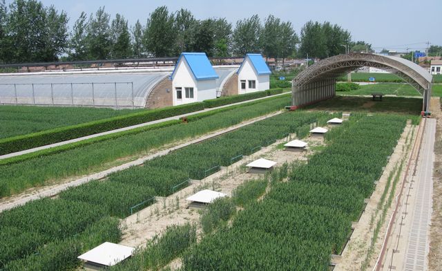 这里有检测土壤—作物水分关系、土壤物理、灌水技术、遥感技术和农业节水器具的试验设施,建有日光温室蔬菜、粮食、果树、草坪和牧草等五大试验区。试验区种植有小麦、玉米、樱桃、苹果、梨、桃、葡萄、杏和各式的蔬菜。此时,玉米秆迎着烈日,大黄梨沉甸低垂,绿树轻摆、青草茵茵,一股绿色清新、满目丰盈扑面而来。