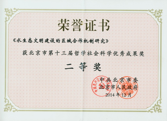 “水生态文明建设的区域合作机制研究”荣获北京市第十三届哲学社会科学奖