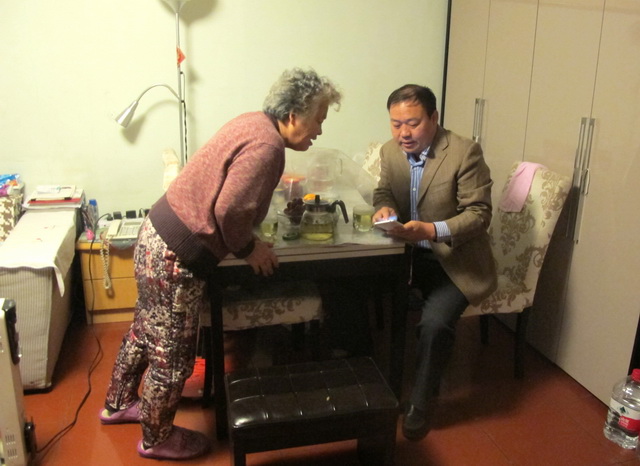 在老同志家中,王丕才主席代表院党委向两位80岁的老同志表示亲切慰问,并关切的询问两位老同志的家庭生活和身体健康情况,希望两位老同志保重身体,健康长寿。两位老同志很感动,对院党委的关心深表谢意,并赞扬院党委为老同志所做的深入细致的工作。