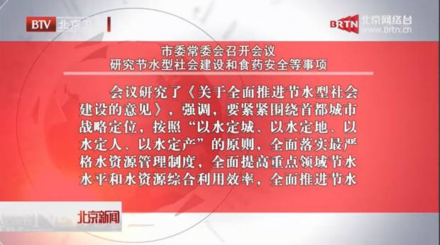 会议强调,要深入学习贯彻习近平总书记系列重要讲话和对北京工作的重要指示精神,认真落实深化生态文明体制改革的要求,牢固树立“创新、协调、绿色、开放、共享”的发展理念,紧紧围绕首都城市战略定位,按照“以水定城、以水定地、以水定人、以水定产”的原则,充分发挥水资源对首都经济社会发展的约束引导作用,全面落实最严格水资源管理制度,全面提高重点领域节水水平和水资源综合利用效率,全面推进节水型社会建设。要加强宣传教育,在全社会营造爱水护水惜水节水的良好氛围,加快建设国际一流的和谐宜居之都。