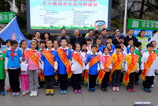 开幕式期间,各单位负责人向白纸坊小学的学生代表授“爱水节水护水宣传员”绶带,白纸坊小学学生及北京水务青年节水护水志愿者宣读了倡议书。开幕式在公益歌曲“饮水思源”的歌声中圆满结束。