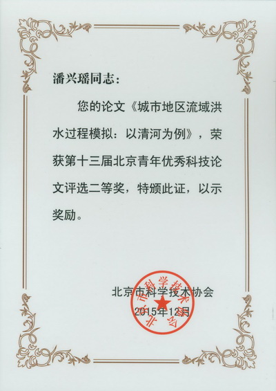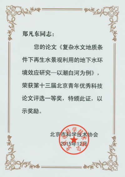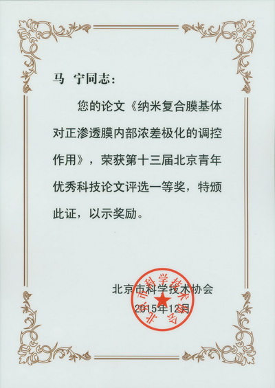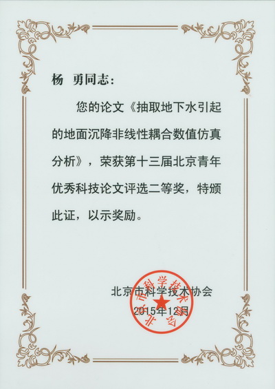 2015年,我院青年科技人员积极参加北京市科学技术协会组织的第十三届北京青年优秀科技论文评选活动,有四位同志喜获奖项,分别为郑凡东和马宁获一等奖,潘兴瑶和杨勇获二等奖。