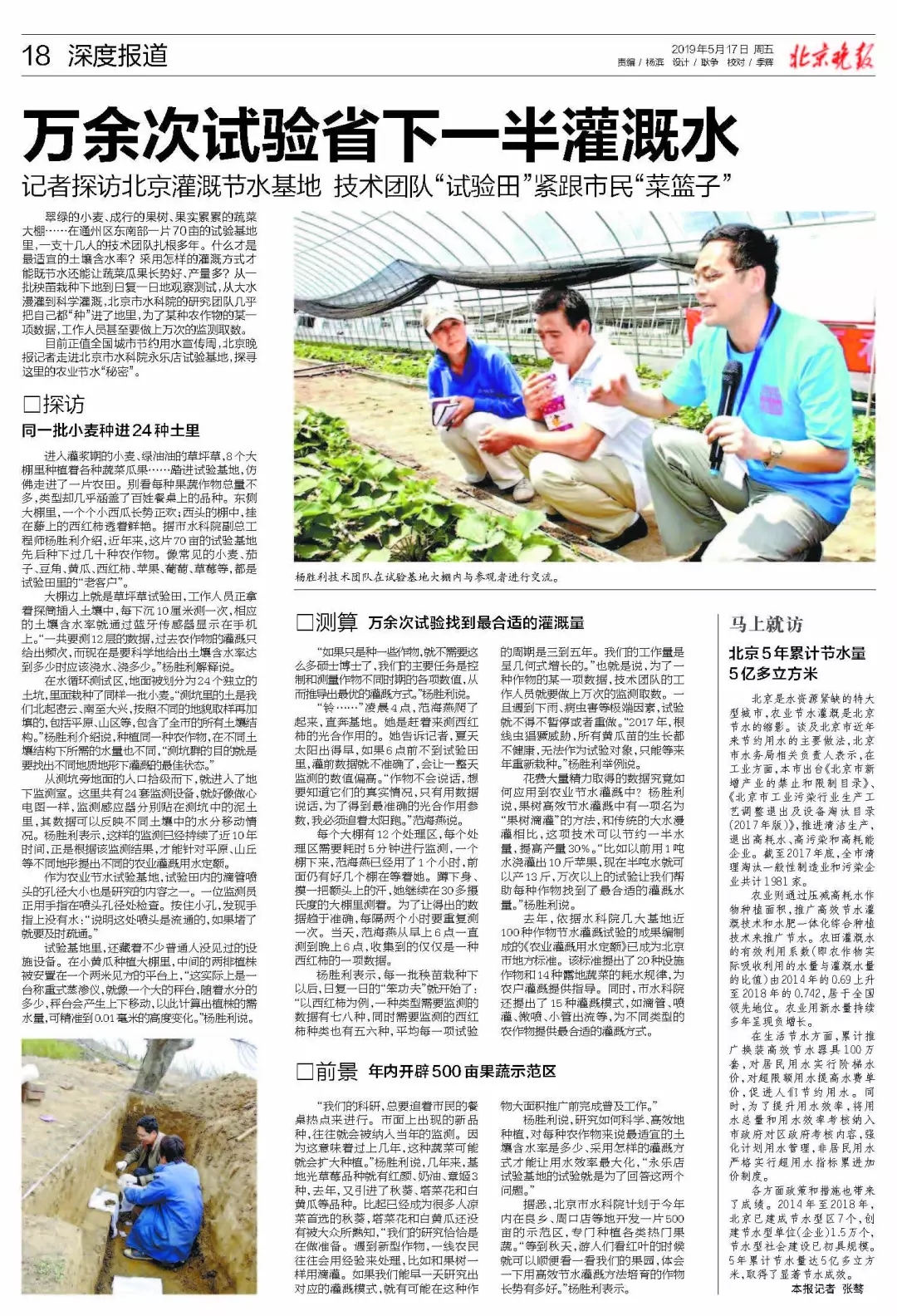 转发:北京晚报文章《万余次试验省下一半灌溉水——记者探访北京灌溉节水基地技术团队“试验田”紧跟市民“菜篮子”》