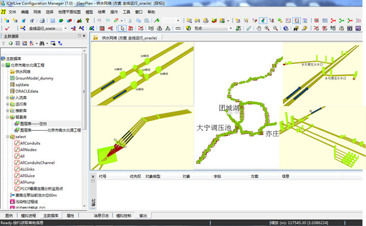 通过研究,以需求调研为基础开展南水北调水资源智能调度管理系统原型设计工作,包括:模型软硬件要求、系统部署与集成、模型功能设计等;利用InfoWorks ICM Live技术平台,构建北京市南水北调工程供水系统在线水力实时模拟技术方案,在实际调水过程中进行模拟运算,实现对泵、闸、调节池等水工建筑物的远程控制指导,实现系统水量、水位、压力及管涵漏损风险的预报预警,支撑构建了北京市南水北调智能调水模型系统,为提高工程供水调度能力提供科学支撑。项目实施过程中对在线模型构建开展科技攻关,疏通从数据采集、数据入库、数据清洗、在线模型数据输入、在线模型自动驱动计算和计算结果输出展示的模型构建全路径。项目围绕北京市南水北调配套工程的建设和运行管理目标,充分利用先进的信息化技术,建设智能调水系统,满足市南水北调工程的运行调度业务管理需求,提高常态和非常态运行方式下工程运行调度的快速反应与处置能力,保障市南水北调工程的安全运行和供水安全。