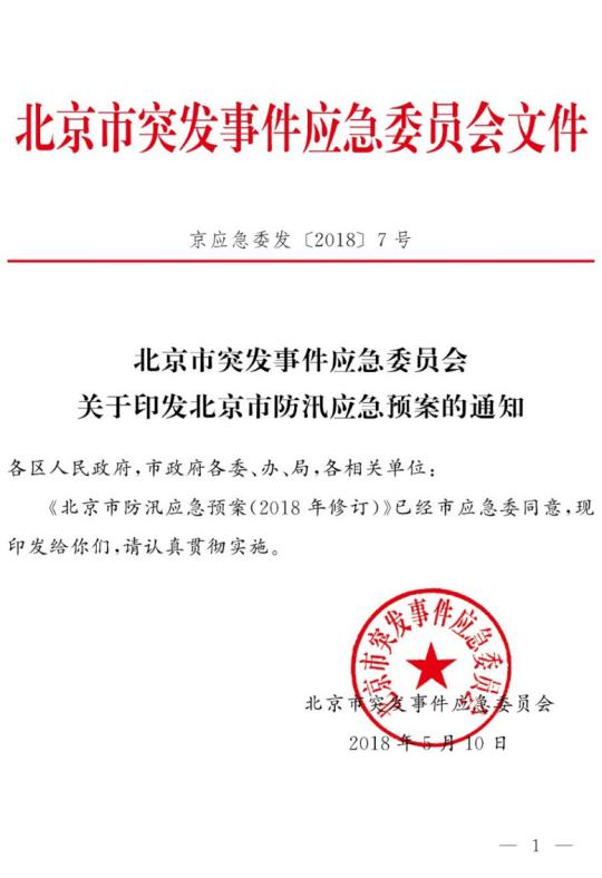 图1 《北京市防汛应急预案(2018年)》发布稿