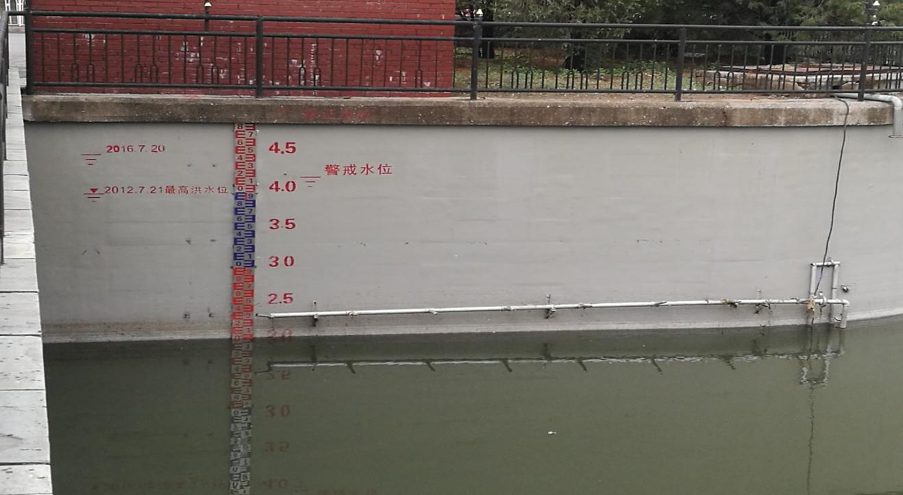 图2 防汛特征水位划定成果现场标识(凉水河,大红门闸前断面)