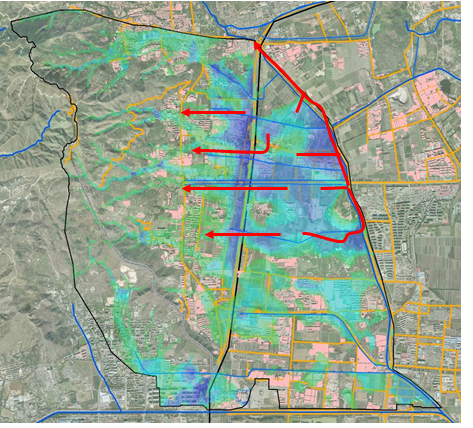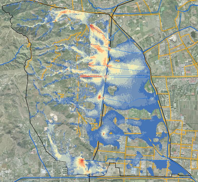 根据《北京城市总体规划(2004年—2020年)》,中心城防洪主要策略为“西蓄、东排、南北分洪”。南旱河流域是西蓄工程的重要组成部分,当发生大范围暴雨时,该流域要将西山洪水就地拦蓄,减少外排,确保城市防洪安全。这就更加大了该流域的出现洪涝灾害的风险机率。