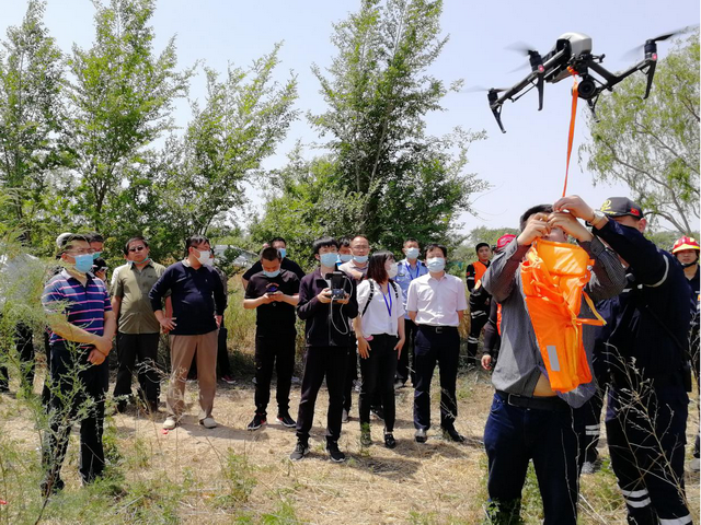 当时,市水科学院相关负责人正带队开展燕化管架桥下游河道合规航拍任务,接到中国红箭救援队的协助救援请求后,具有中国AOPA民用无人机驾驶机长证的无人机小组火速赶往现场。在现场指挥和协调下,由生态所、减灾所、水资源所、水工程所、技术交流部、项目部、综合办相关人员组成的无人机小组发扬团队协作精神,与现场救援人员密切配合,机长时宇克服无人机盲飞、载重起降、侧风大等困难,以精湛的操控技术,顺利为身处危险水域内的受困群众运送救生衣。为现场救援工作赢得了宝贵时间,创造了救援的有利条件。