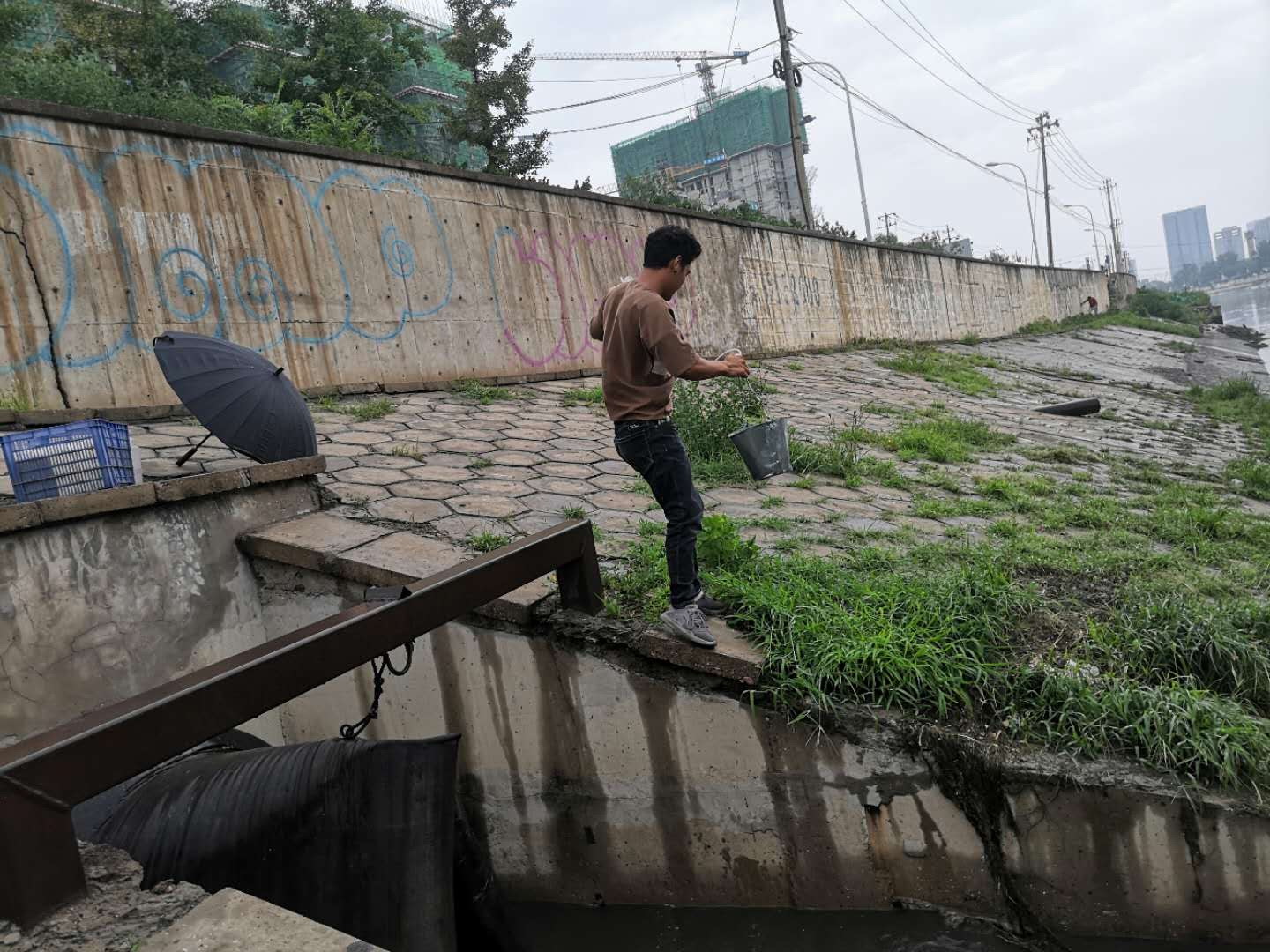 通惠河八里桥溢流口工取样 通马路溢流井人工取样
