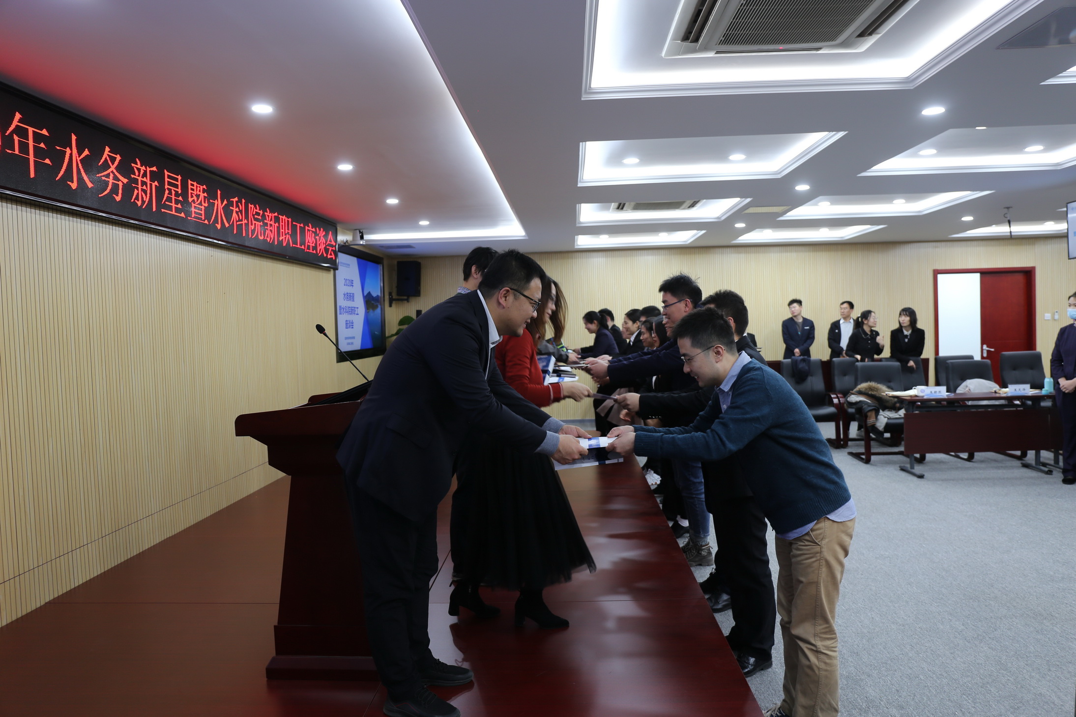 会上,2019年参加入职拜师仪式的员工结合岗位,逐一汇报了一年来工作上所取得的学习收获与研究成果,他们的导师进行了中肯的点评。随后,11名第二批水务新星培养计划学员结合自身工作和拟开展的课题进行了座谈交流,水科学院各部门主管逐一介绍了所在部门的情况。