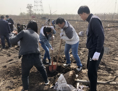 随后,全体人员协助开展果园氮素迁移转化试验区果树苗木种植等前期布置工作,参与党员严格按照试验区种植要求,两人一组,五人一群,紧密分工协作,挥锹挖窝、扶苗培土、修围水圈,齐心协力完成了梨树、桃树、猕猴桃等百余棵苗木种植,为下一步开展田间试验观测奠定了坚实的基础。本次劳动在使全体人员体验生活之余有效解决了农忙时人手不足等问题,同时发挥了基地节水教育宣传的功能,使党员及群众了解各项高效节水灌溉方式以及果树栽培模式等。