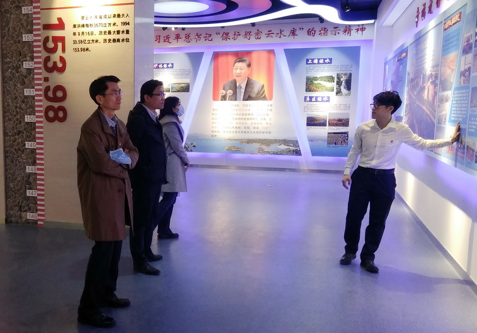 然后,开展了密云水库建设史教育。密云水库建设史代表了新中国成立以来北京水利发展史,是党中央、京津冀广大党员、群众投身北京水利建设的光辉历史。全体人员一起参观了密云水库修建记碑、密云水库建设史展馆,听取展馆讲解人员介绍,全面了解水库建设决策指挥、设计施工、移民搬迁、除险加固等历史情况和建设成就,感受建设者先进事迹和无私奉献精神。