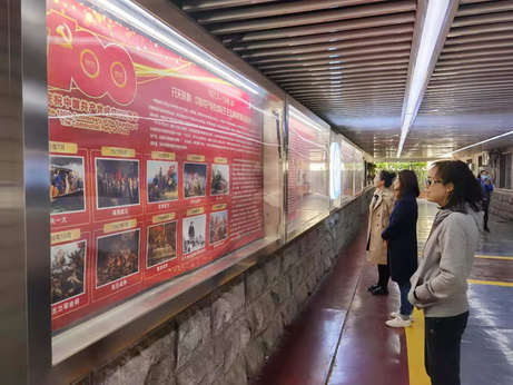 展览分为4个版面,以“开天辟地”“改天换地”“翻天覆地”“惊天动地”四个党史阶段,图文并茂的展示了中国共产党从1921年诞生至今100年的标志性历史事件。从石库门到天安门,从兴业路到复兴路,从站起来、富起来到强起来,中国共产党与时代同步伐、与人民共命运,跨过一道又一道沟坎,取得了一个又一个辉煌胜利。此外,还特别添加了“建设官厅水库”“南水北调中线正式通水”“习近平给建设和守护密云水库的乡亲们回信”等具有北京“水”特色的事件。