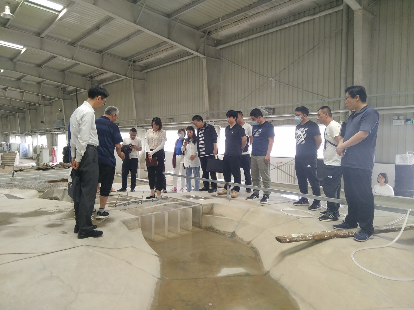 在市水科学院水工模型试验大厅,市水科学院技术人员对水工模型大厅基本情况及密云水库第一溢洪道物理模型等近年来围绕北京水利工程建设开展的模型试验项目及成果进行讲解。在实验室,水工程技术研究所党支部负责人介绍了市水科学院在水利工程材料、结构检测方面的设备、能力、资质和业务开展情况及近年来利用水下机器人、无人测量船、探地雷达等先进检测设备取得的研究成果。