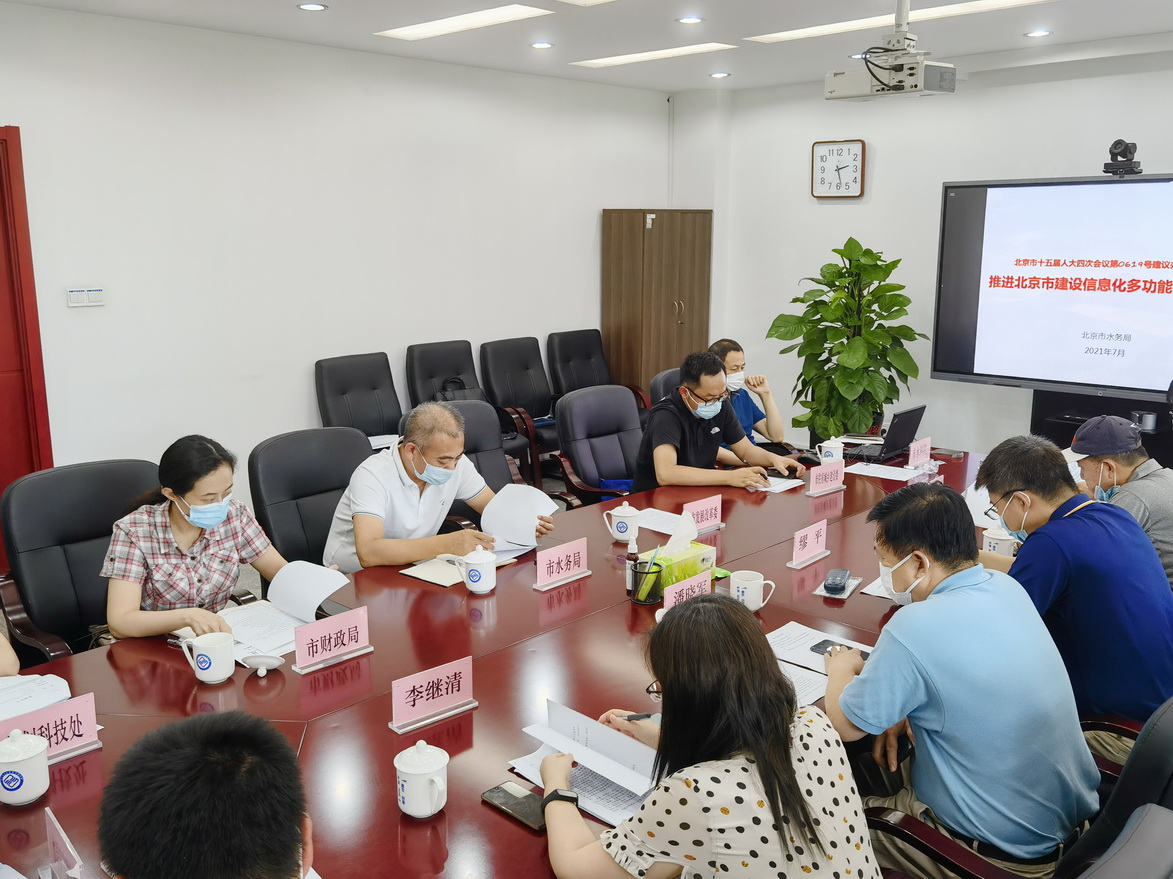 7月30日,市水科学院参加人大代表建议第0619号-北京市建设信息化多功能雨水调蓄池交流会。会议由市水务局组织召开,部分人大代表及委办局相关负责人参会。