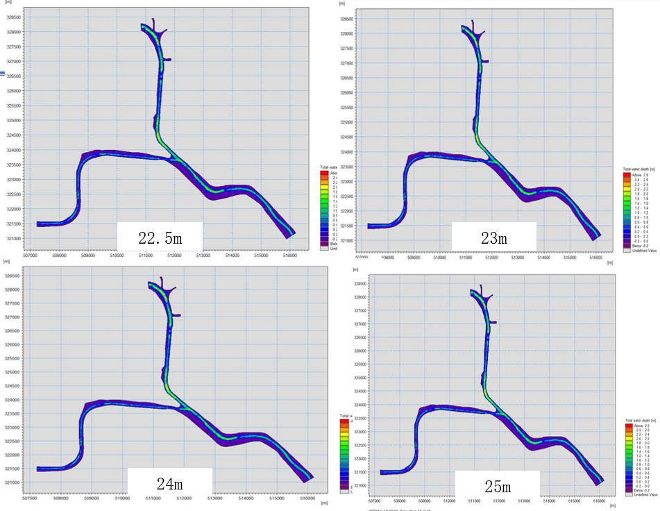 本次监测评估采用现场调查与模型模拟相结合的方式,研究辛堡闸22.5m水位、23m水位、24m水位、25m水位四种不同工况下水生态状况,初步分析了不同蓄水条件下上下游流速、水深、栖息地等变化情况,并结合蓄水前后底栖、鱼类等生物变化,综合分析蓄水对水生生物完整性、水生态健康状况等影响,为今后水力调控、闸坝运行调度提供支撑。