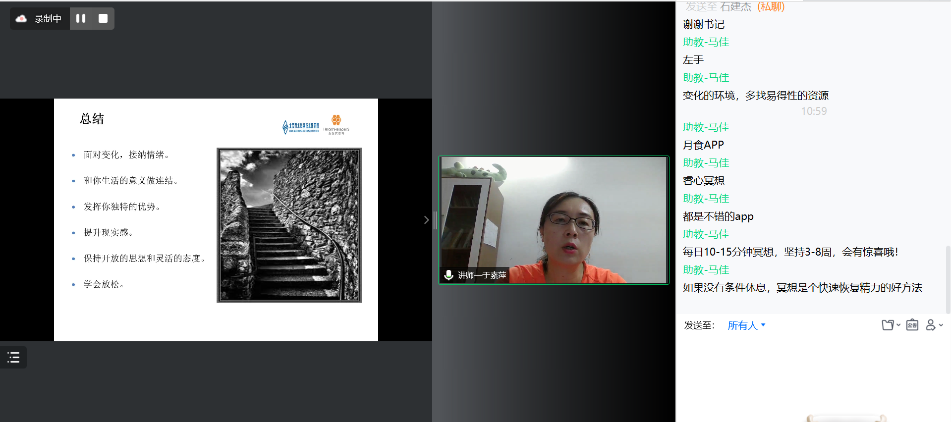 自4月22日北京报告本轮奥密克戎疫情首例病例以来,我院职工不同程度地经历了居家观察、管控封控、乃至最大程度居家办公的状态。人员流动的受限、工作生活环境的变化,或多或少影响着我们的情绪和健康。为了帮助大家适应多变的环境,做最好的自己,6月2日,我院举办首场“云上”EAP,助力全员拓展心理弹性。