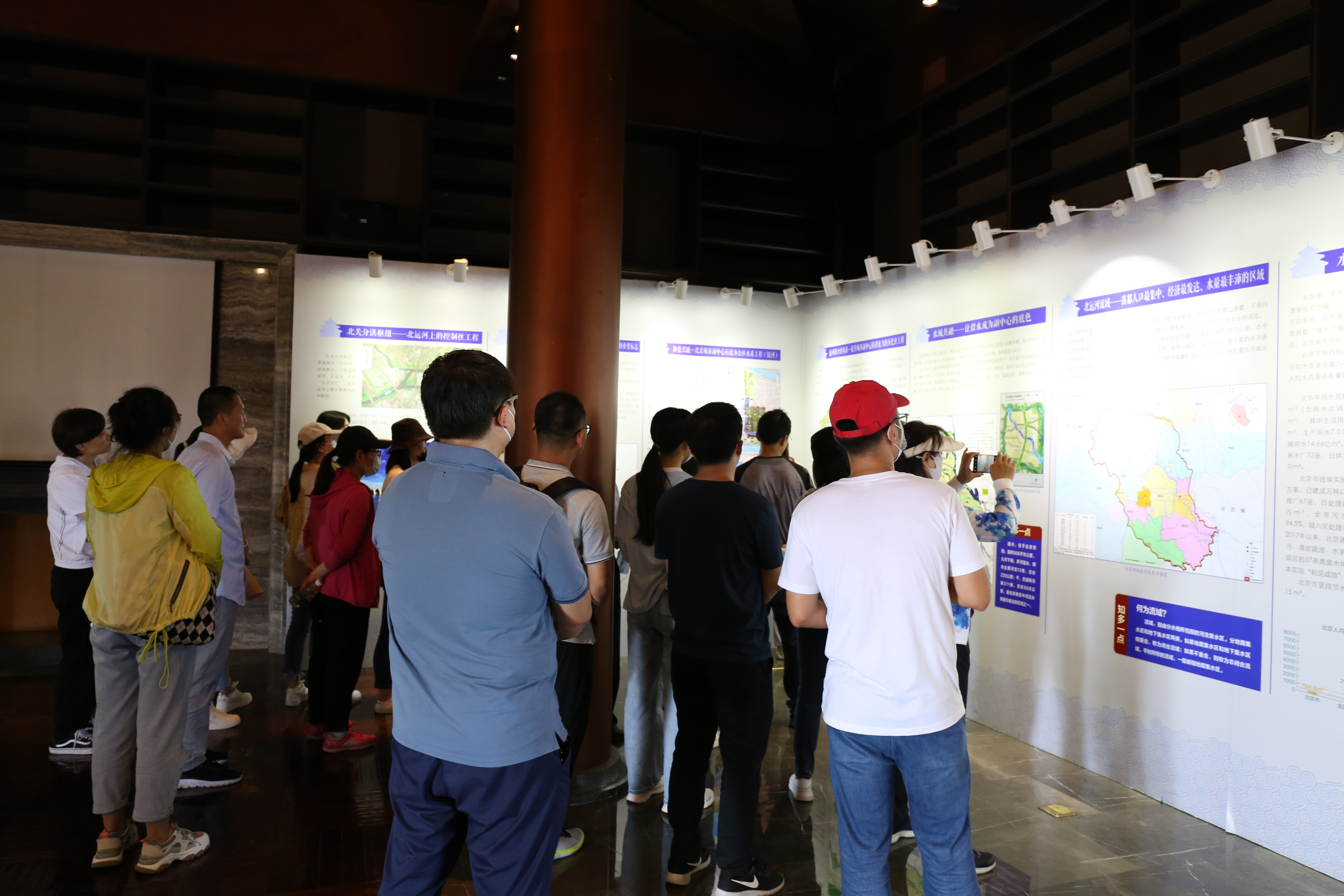 在北运河管理处北关闸管理所专业技术人员的带领下,大家依次参观了五河汇流北关分洪枢纽和运河文化展、宋庄蓄滞洪区(二期建设工程),充分了解了“通州堰”运用现代工程技术手段,通过分、蓄、排等措施,构建上蓄、中疏、下排防洪体系的分水原理,以及承载着保障城市副中心防洪安全的重要作用。