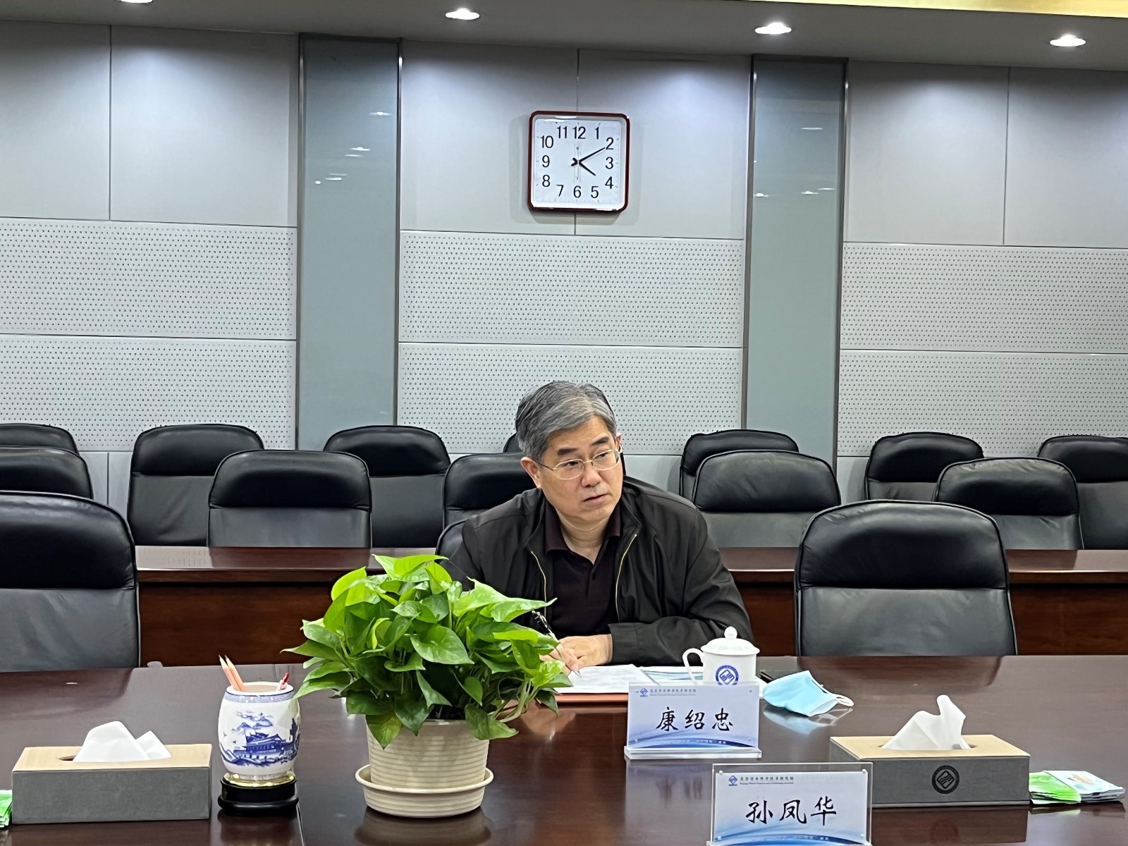 10月8日,中国工程院院士、中国农业大学康绍忠教授应邀来我院指导学科发展和“北京学者”培养工作,我院副院长孟庆义、首席专家孙凤华、“北京学者”刘洪禄以及水资源研究所、科技管理与规划计划科相关同志参加了会议。