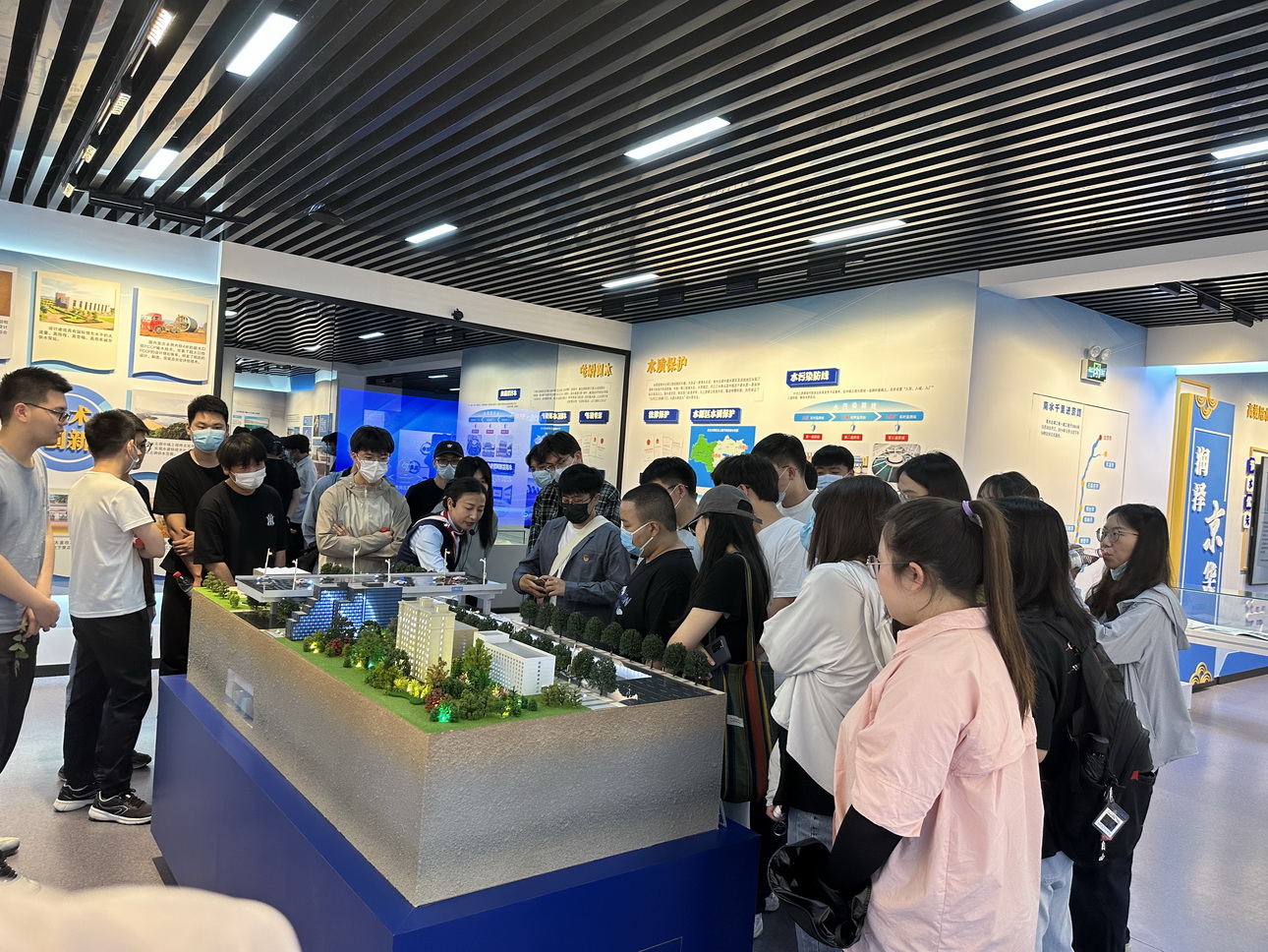 一行人首先参观了明渠纪念广场、调节池工程,乘坐电瓶车环湖考察,领略团城湖秀美风光。随后走进“南水北调工程助力首都水清安澜”展馆,聆听专业讲解,通过图片展板、沙盘模型等形式,了解南水北调工程的历史、现状和未来,让团员青年对首都水环境现状以及南水北调供水情况有了更加直观深入的认识。