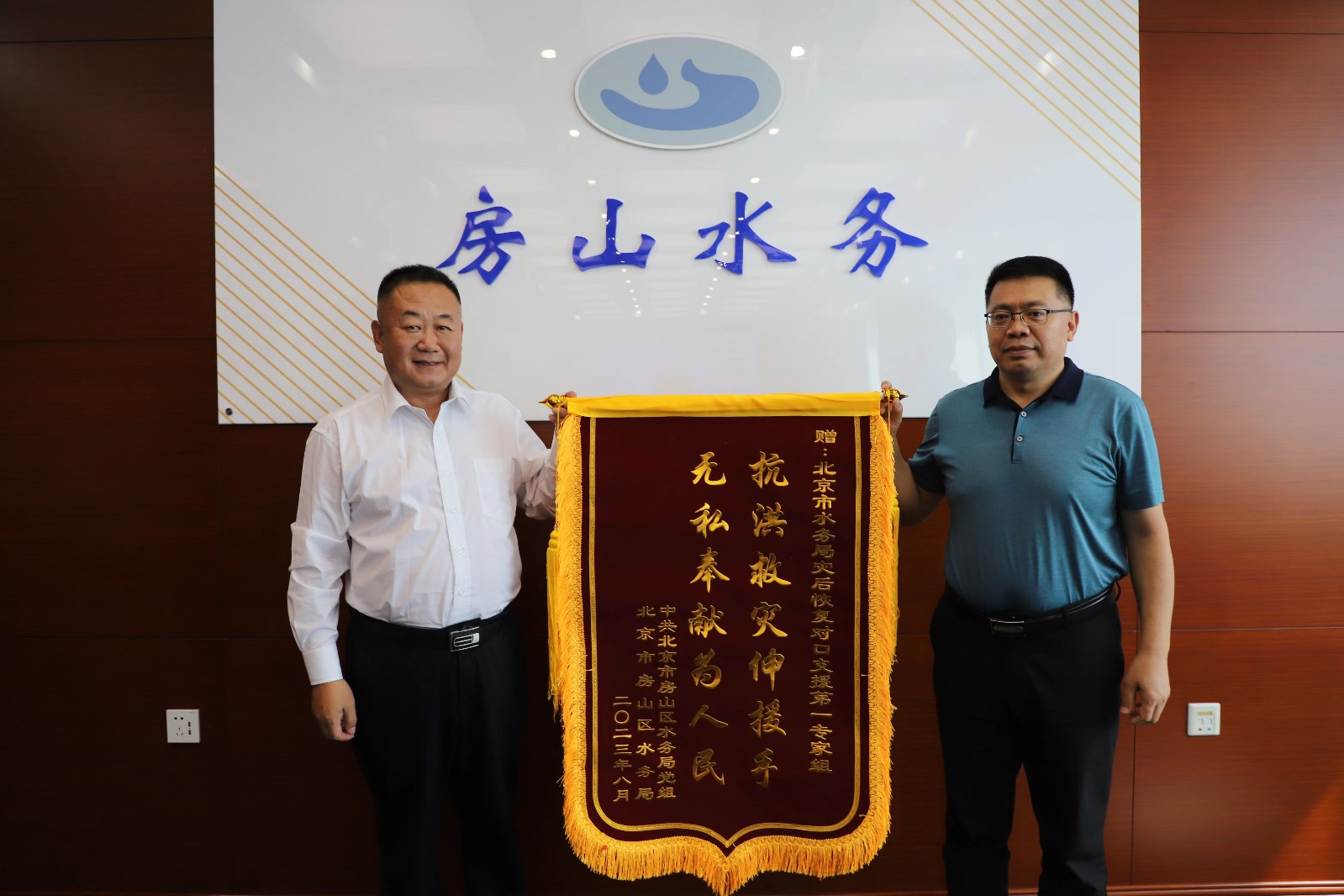 双方一致表示将进一步加强业务交流,围绕房山区灾后恢复重建过程中防洪减灾、城乡供排水、数字孪生、节水型社会创建等方面开展深入合作。座谈会结束后,房山区水务局向对口支援专家组赠送了锦旗。