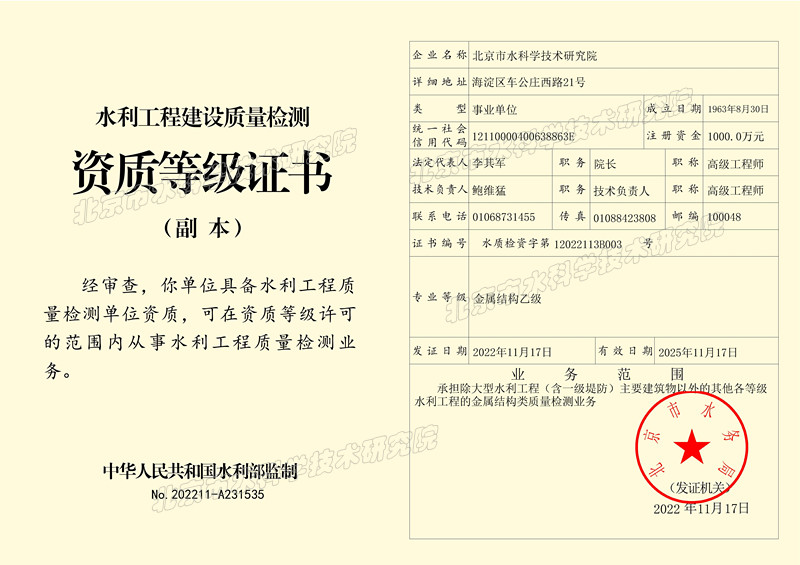 北京市水科学技术研究院是从事工程质量检测的专业机构,为保证检测工作的公正性、科学性和独立性,切实履行社会责任,保证检测工作有序开展和检测质量,特声明如下: