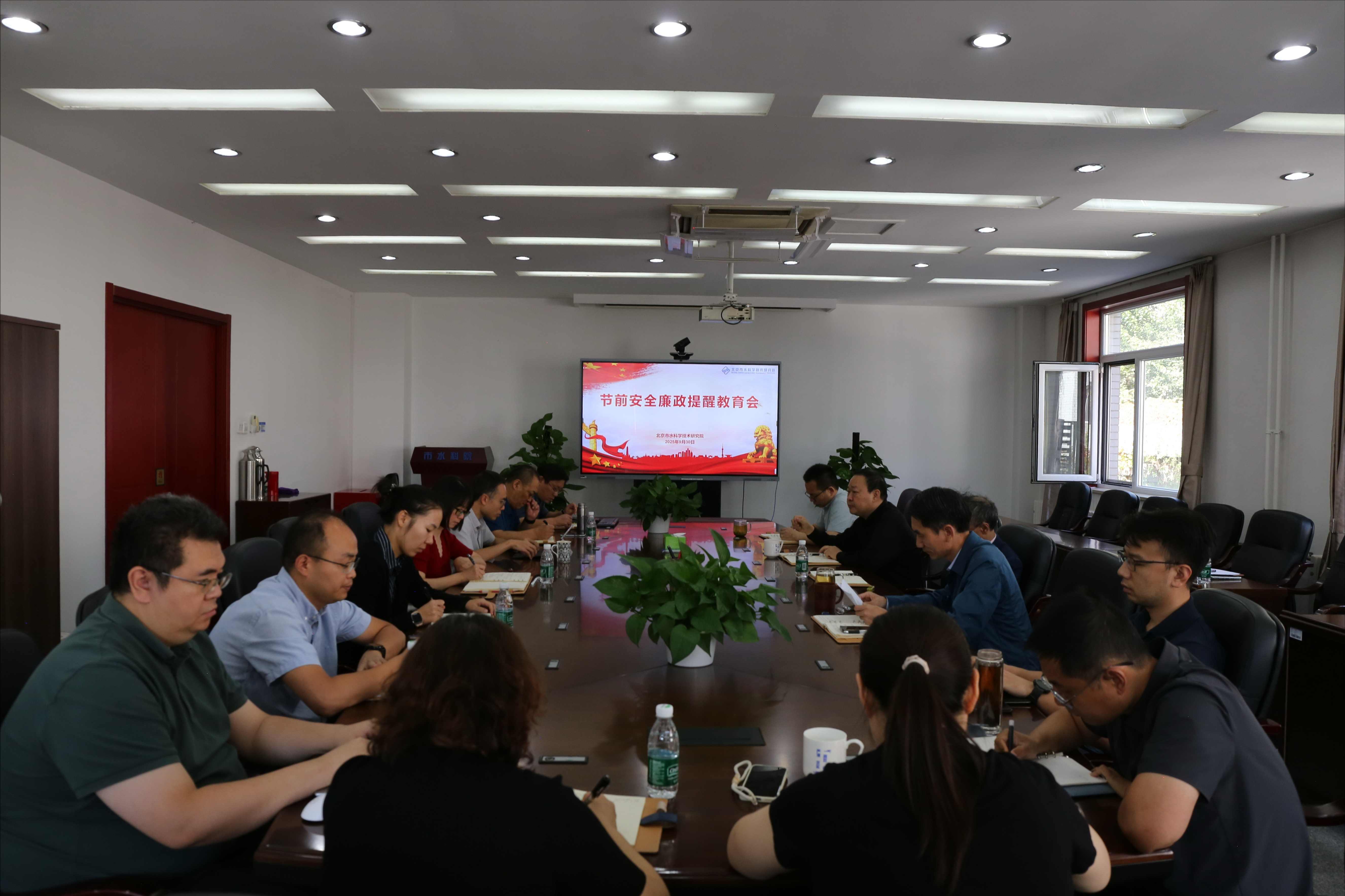 9月30日,市水科院召开节前安全廉政提醒集体谈话会,部署“国庆”“中秋”双节期间安全责任落实与廉政风险防控工作,院领导班子及各部门主管参加会议。