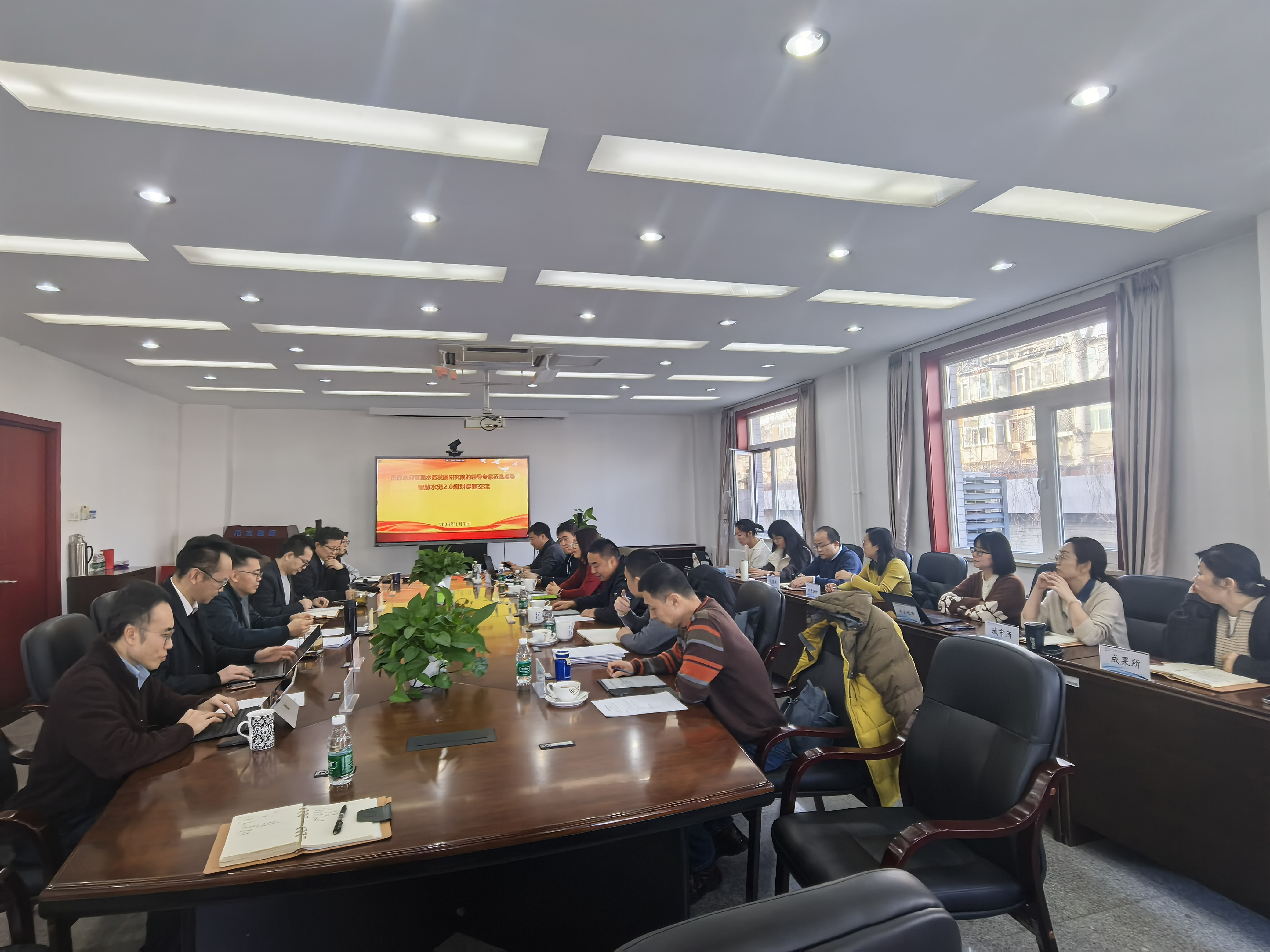 近日,智慧水务院主要负责人一行莅临市水科院开展智慧水务规划交流与座谈,市水科院主要负责人及相关部门代表参加了本次会议。